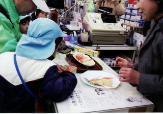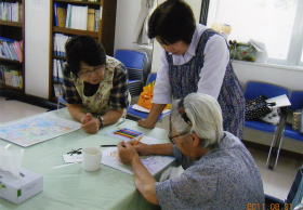 私たちは毎月又は隔月に一回、地域在住の一人暮らしのお年寄りを招待して食事会を実施しています。それは少子高齢化を迎えて一人暮らしをしている高齢者が多くなっている現代、地域を単位として大勢の人たちと共に会食をすることで、生きる意欲を湧き立たすと共に人と人とのつながりや絆を作り出す機会にして頂きたいと願っているからであります。そのために地域で馴染みの深い料理を中心に献立を考え、食事会を開催する主旨に賛同して下さった方々より地元産の新鮮な野菜、魚介類等の無償提供を受けて、和気あいあいの楽しい雰囲気のもとで会食を行っています。これまでの会食を通して、たくさんのお年寄りから「楽しかったよ」「今度の時も必ず呼んでな」と言う声が多く寄せられ、それを励みに次の企画を立てていますが、その実、調理するメンバーの方がそれ以上に盛り上がって「また次もやろうなあ」と言いながらひそかな楽しみにしています。