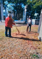 とくに子供たちの場合、全くの初対面であっても大人の人たちと掃除を一緒する事は、平素の日常生活では得られない“何か”を受けとめて、それがまた新鮮は体験となって喜びと感動を広げているようです。この子ども達が成人したあかつきには、神社で汗をながした想い出をあたため、いつまでも地元を大切に思いながらも、地域に根着した伝統文化を守り育ててくれるようになったらすばらしいな〜と願いながら毎月の活動に取り組んでいます。